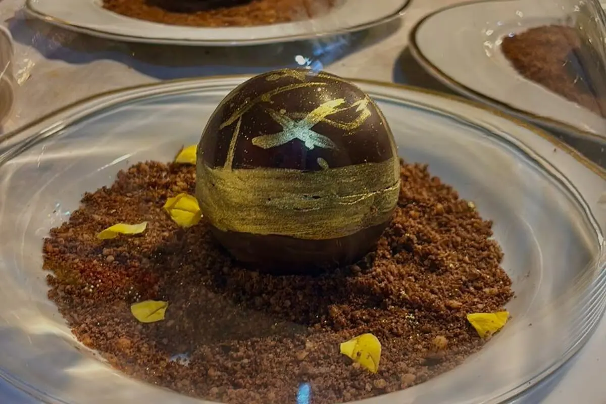 Prepare a musse de coco e a geleia de manga. Congele até atingir -18 °C. Aqueça a glaçagem até 37 °C. Banhe as entremets, deixando o excesso escorrer. Monte as esferas de chocolate: coloque uma camada de cocada no fundo, seguida pelo entremet e finalize com a decoração desejada. Sirva com a calda de chocolate.