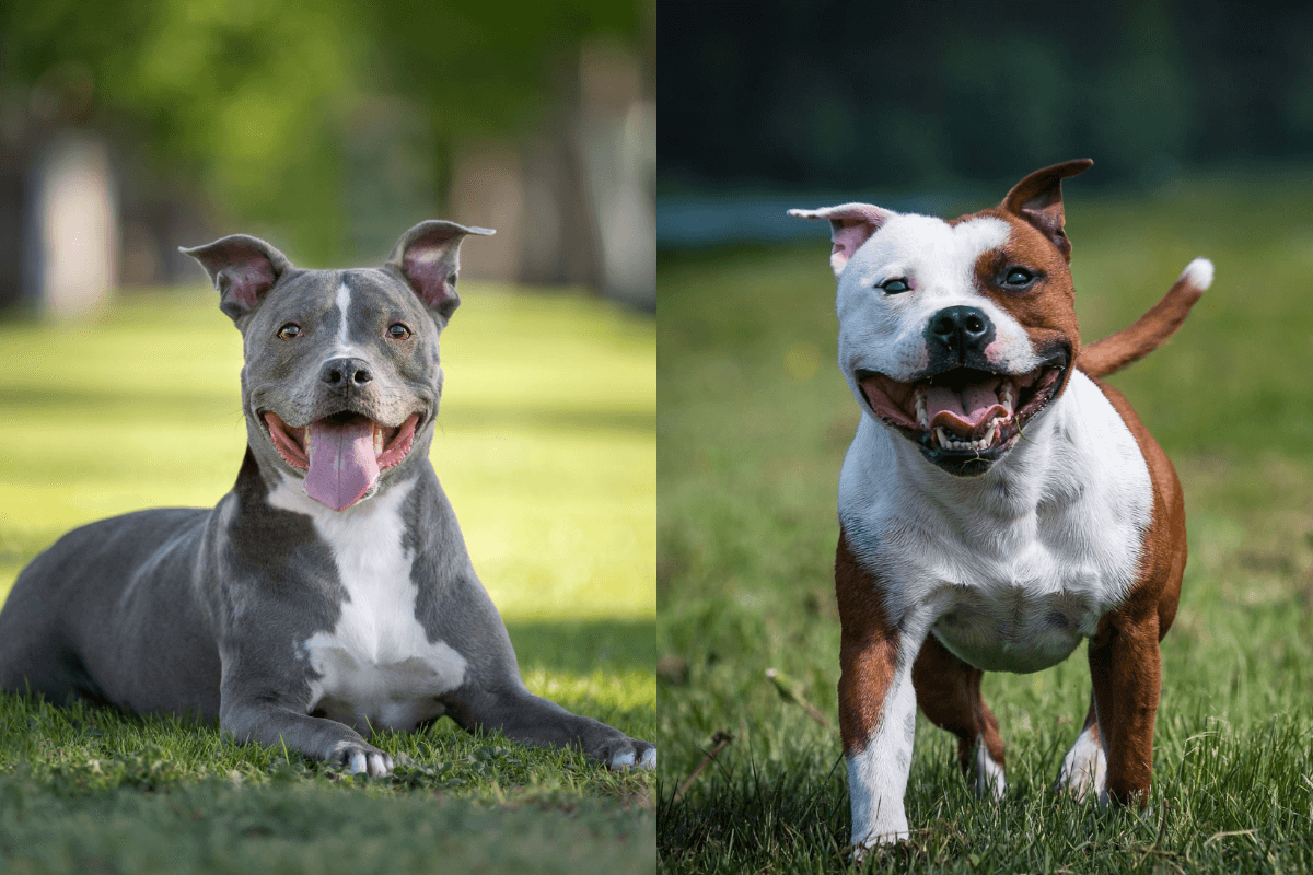 Tanto o pitbull quanto o american staffordshire terrier são carinhosos, leais e extremamente apegados aos tutores. Contudo, o amstaff, devido à criação voltada para exposições e lares, costuma ser mais estável e previsível no comportamento, além de sociável com estranhos e outros animais.