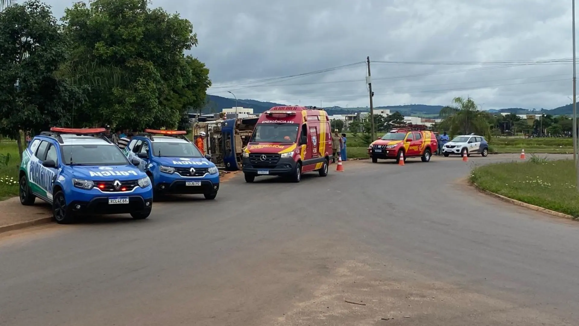 A Polícia Militar, por meio do 23º Batalhão da Polícia Militar (BPM), também esteve presente no local do acidente. Os policiais realizaram o registro da ocorrência e atuaram no controle do tráfego, uma vez que o tombamento comprometeu parcialmente a circulação de veículos na rótula, considerada um ponto estratégico de acesso à cidade.