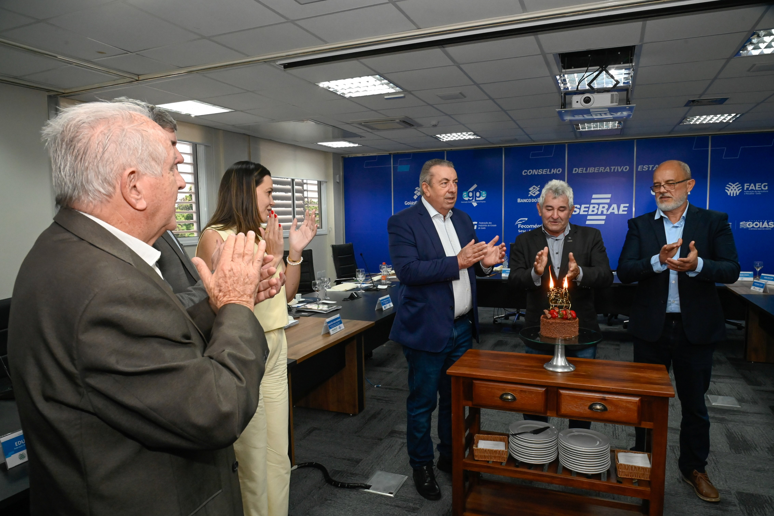 O encontro foi encerrado com homenagens aos aniversariantes do mês, Fabrício (AGPE), Valdir Ribeiro (FCDL), Adriano da Rocha Lima (SEDI) e Márcio Luís (FACIEG).