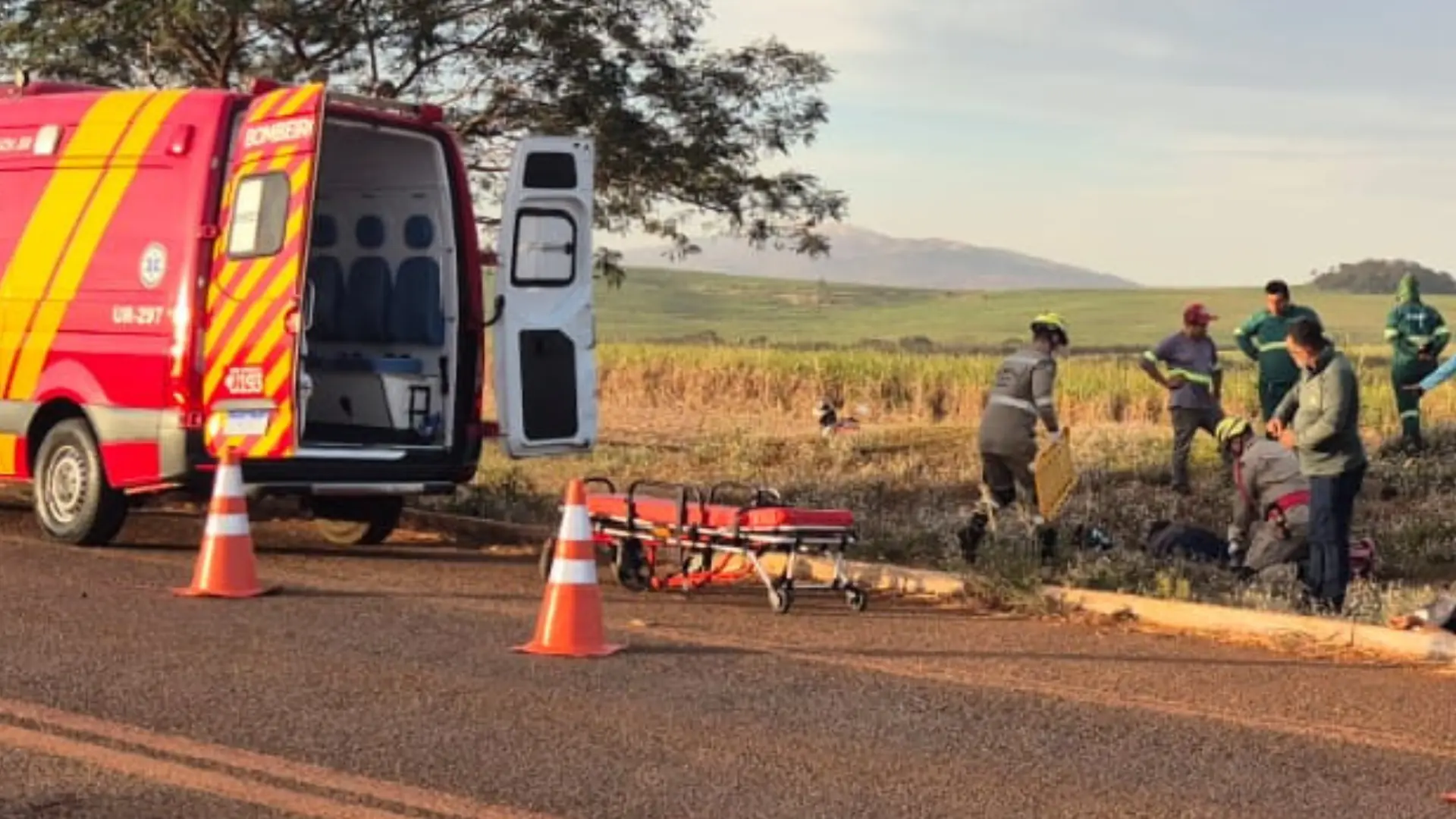 As equipes de resgate encontraram as vítimas conscientes e orientadas, mas com ferimentos graves. O condutor da motocicleta foi socorrido por uma equipe do Serviço de Atendimento Móvel de Urgência (SAMU), enquanto o passageiro, um homem de 45 anos, foi atendido pela Unidade de Resgate dos Bombeiros (UR-297). Ele apresentava fraturas graves no membro inferior esquerdo, com perda de tecido, além de fratura no braço direito e múltiplas escoriações pelo corpo.
