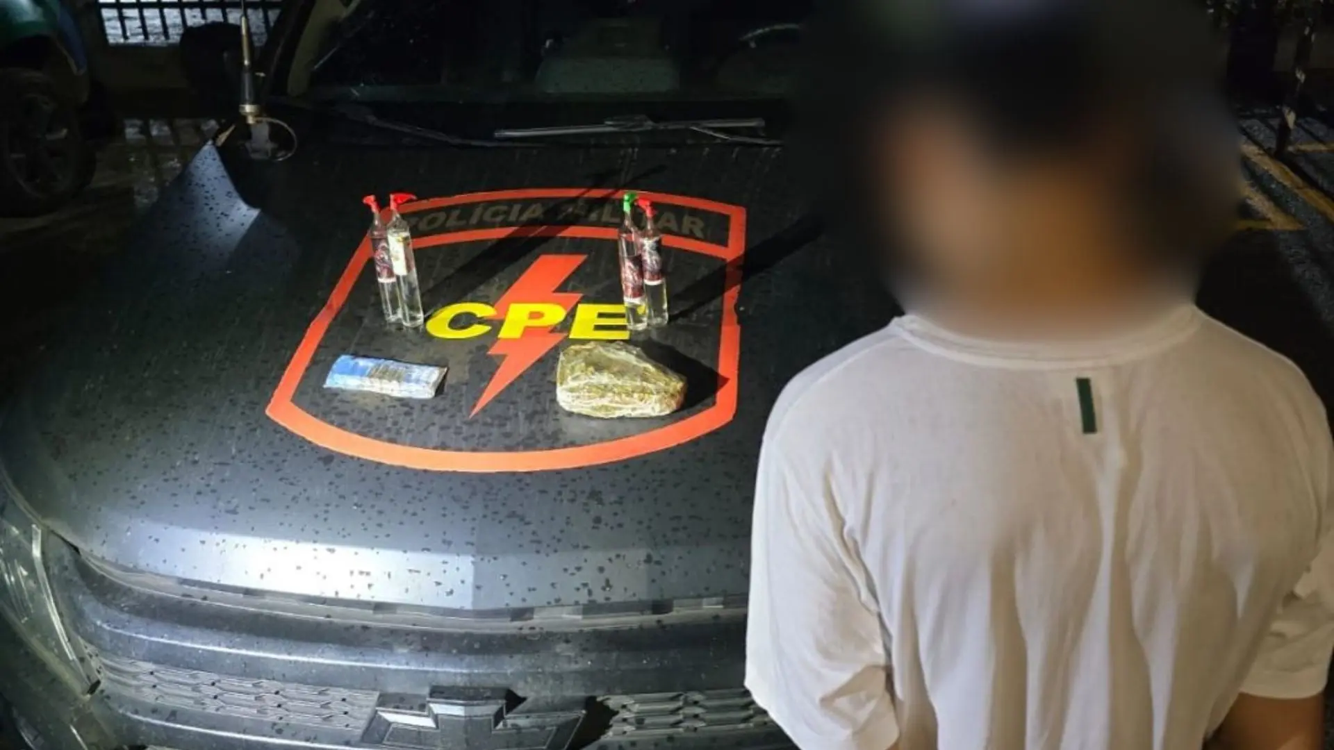 De acordo com a polícia, durante a abordagem, os militares localizaram quatro frascos de lança-perfume e aproximadamente meio quilo de skunk, droga conhecida como “super maconha”, caracterizada pelo alto teor de substâncias psicoativas. Além dos entorpecentes, também foi constatada a posse irregular de munição.