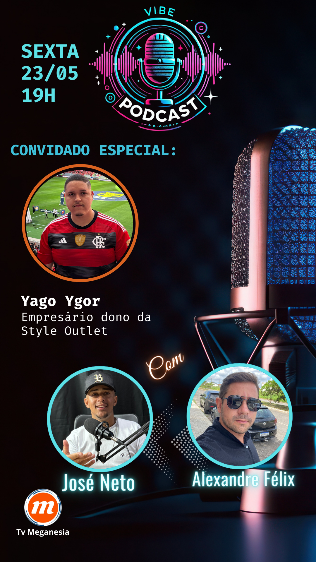 Nesta sexta-feira, 23, às 19h00, o Vibe Podcast promove mais uma edição especial, recebendo como convidado o empresário Yago Ygor, proprietário da Style Outlet. A transmissão acontece com apresentação de José Neto e Alexandre Félix, que conduzirão a entrevista ao vivo, discutindo temas ligados ao empreendedorismo, moda e negócios.