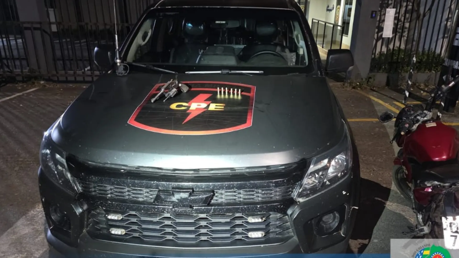 Durante a ocorrência, a polícia apreendeu um revólver calibre 38, com seis munições, sendo três deflagradas e três intactas. A motocicleta utilizada pelo suspeito, que possuía registro de furto/roubo na cidade de Jaraguá, também foi recuperada.