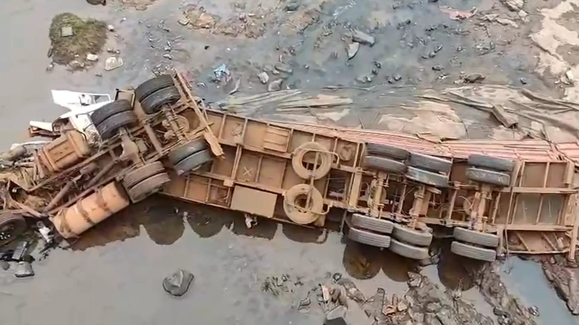 caminhão cai de ponte