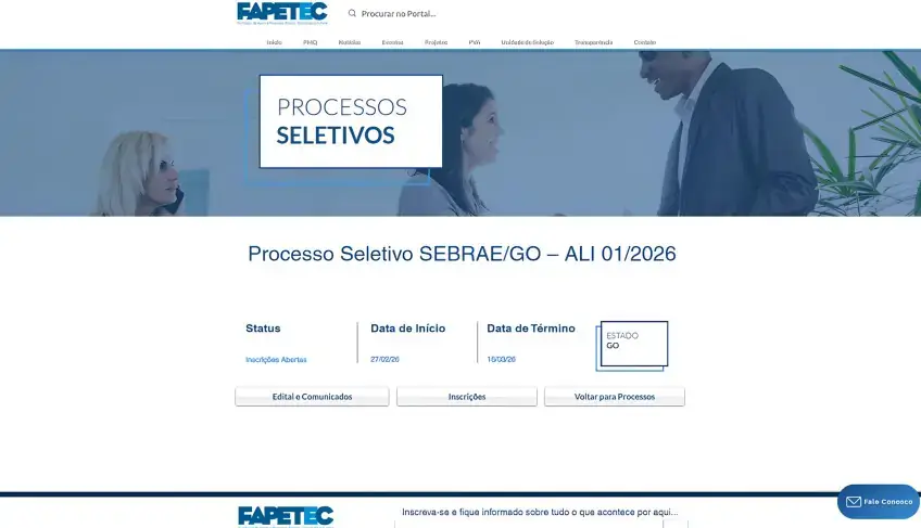O Sebrae Goiás, juntamente com a Fundação de Apoio a Pesquisa, Ensino, Tecnologia e Cultura (Fapetec), está com inscrições abertas…
