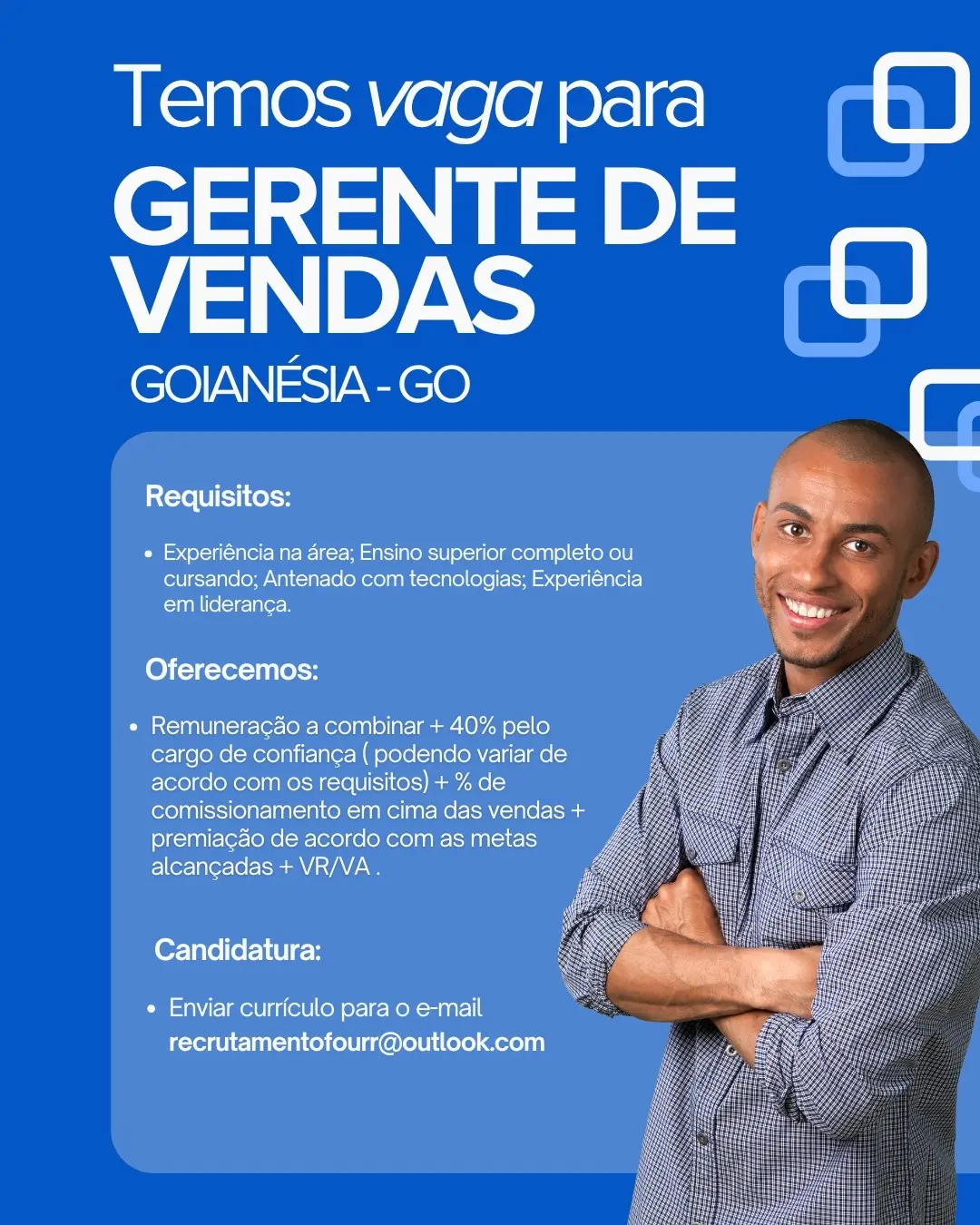 GOIANÉSIATODAS AS NOTICIASVariedadesOportunidade de emprego em Goianésia Última atualização: 16/10/2025 as 14h30 Dener Rafael Compartilhar 0 Min de leitura Compartilhar MARCAÇÕES: emprego, emprego e renda, Goianésia, oportunidade de emprego, vendedor Dener Rafael 16 de outubro de 2025 Compartilhar Facebook Twitter Copiar link Imprimir Notícia anterior Estoques de petróleo nos EUA sobem 3,524 milhões de barris, revela DoE Próxima notícia 7 mitos e verdades sobre a anestesia publicidadeLeia também... Urgente: Confronto com a CPE termina com dois mortos na GO-080, entre Goianésia e Jaraguá GOIANÉSIA Segurança TODAS AS NOTICIAS CPE prende em flagrante suspeito de furto de ultraleve em Goianésia GOIANÉSIA Segurança TODAS AS NOTICIAS Carnaval de Goianésia será 100% coberto para garantir festa mesmo com chuva GOIANÉSIA TODAS AS NOTICIAS Morador de Goianésia é encontrado após desaparecimento em Cajazeiras, na Paraíba BRASIL GOIANÉSIA TODAS AS NOTICIAS Programa Aluguel Social abre 351 novas vagas em Goianésia; veja como se inscrever GOIANÉSIA TODAS AS NOTICIAS publicidade- Publicidade -