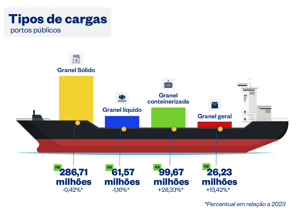 “A gente teve uma movimentação de minério de ferro expressiva, nosso óleo combustível também foi representativo. Na verdade, a gente acabou alcançando um recorde em relação ao ano de 2023 — pouco mais de 1% — mas a gente já vinha também de um recorde anterior, então são números muito positivos. Isso mostra que o nosso setor portuário vem atendendo a capacidade, a demanda, de maiores volumes de movimentação de carga.”