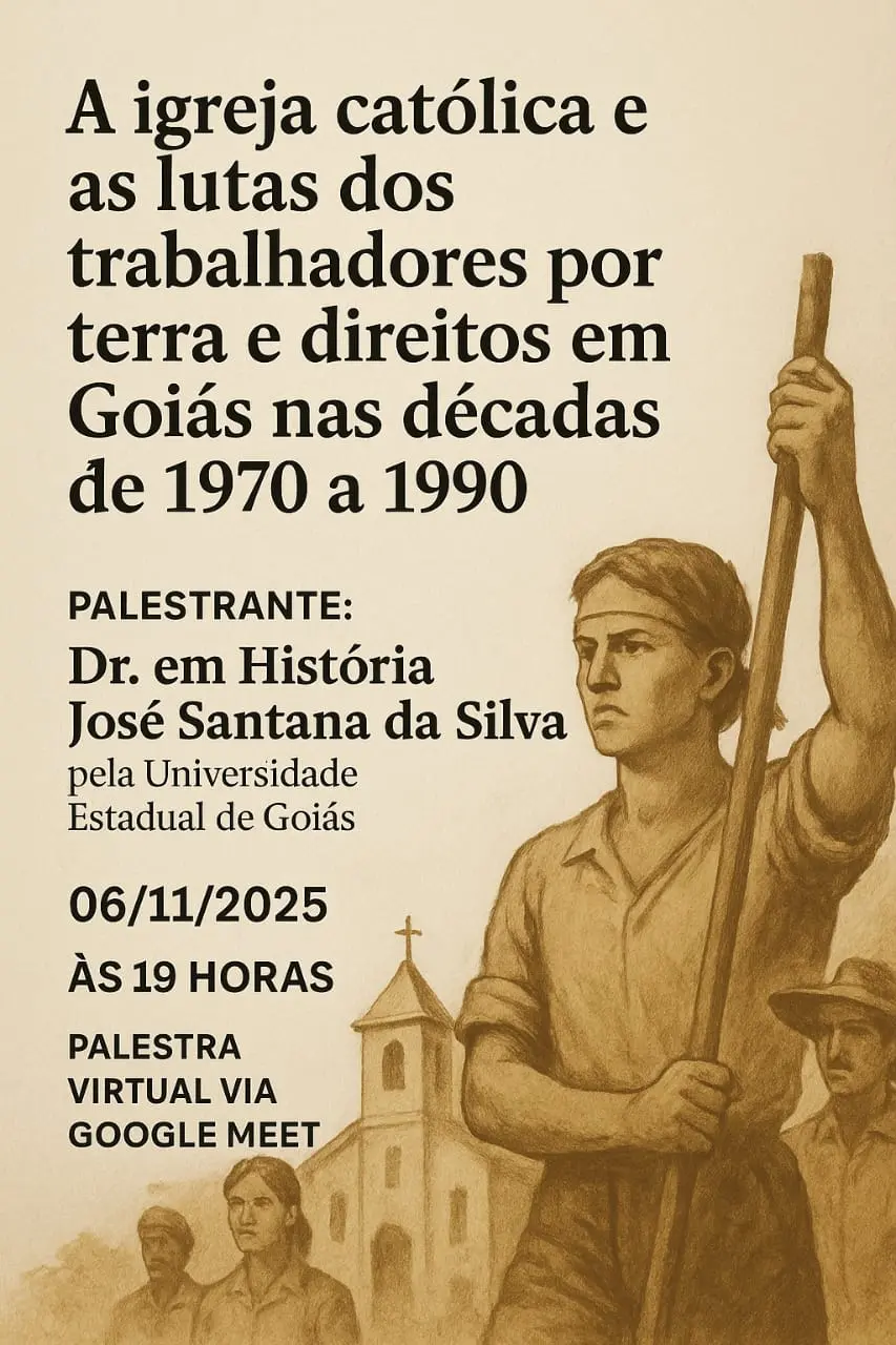 Durante a exposição, o professor abordará o papel histórico da Igreja Católica nas mobilizações sociais e nas disputas pela terra no estado de Goiás, entre as décadas de 1970 e 1990. A palestra busca promover uma reflexão sobre a relação entre fé, política e transformação social, destacando o envolvimento de agentes pastorais e comunidades eclesiais de base na defesa dos direitos dos trabalhadores rurais.