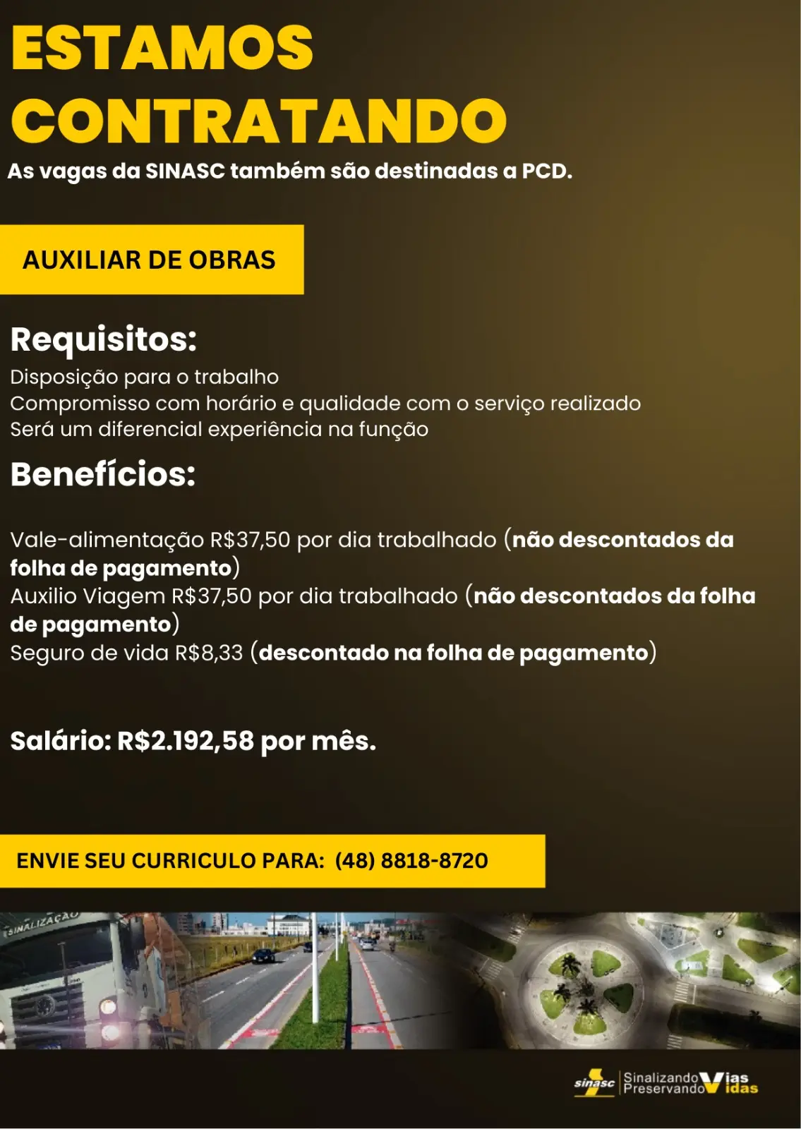 As contratações fazem parte da ampliação das atividades da SINASC, que atua na área de sinalização viária e infraestrutura urbana.