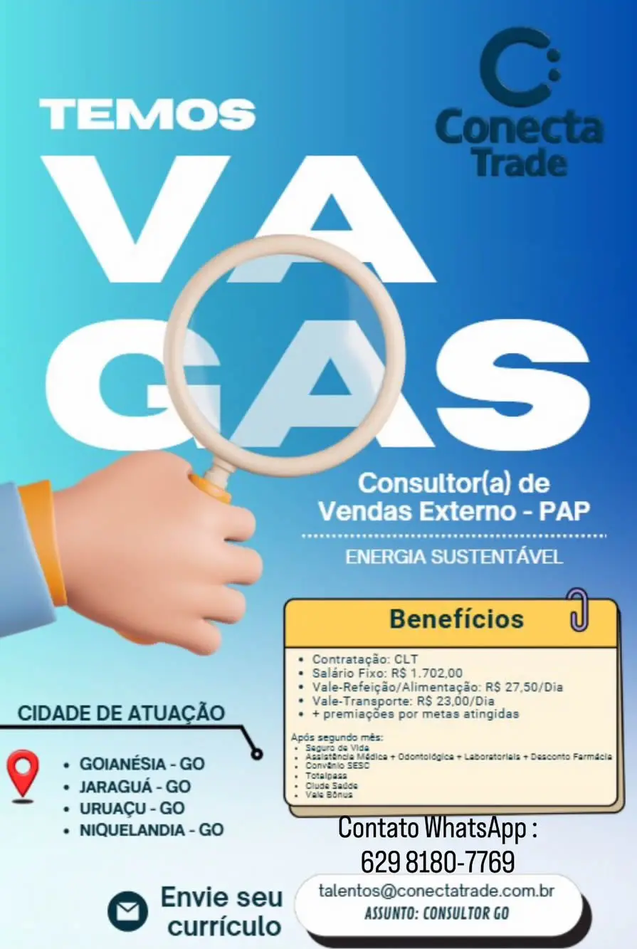 A Conecta Trade está com vagas abertas para o cargo de Consultor(a) de Vendas Externo – PAP, com foco em energia sustentável. Se você busca um trabalho com carteira assinada, benefícios atrativos e oportunidade de premiações por metas, essa pode ser a sua chance!